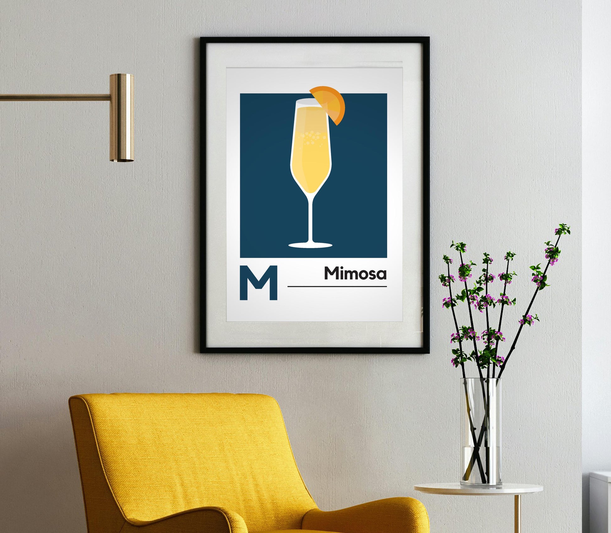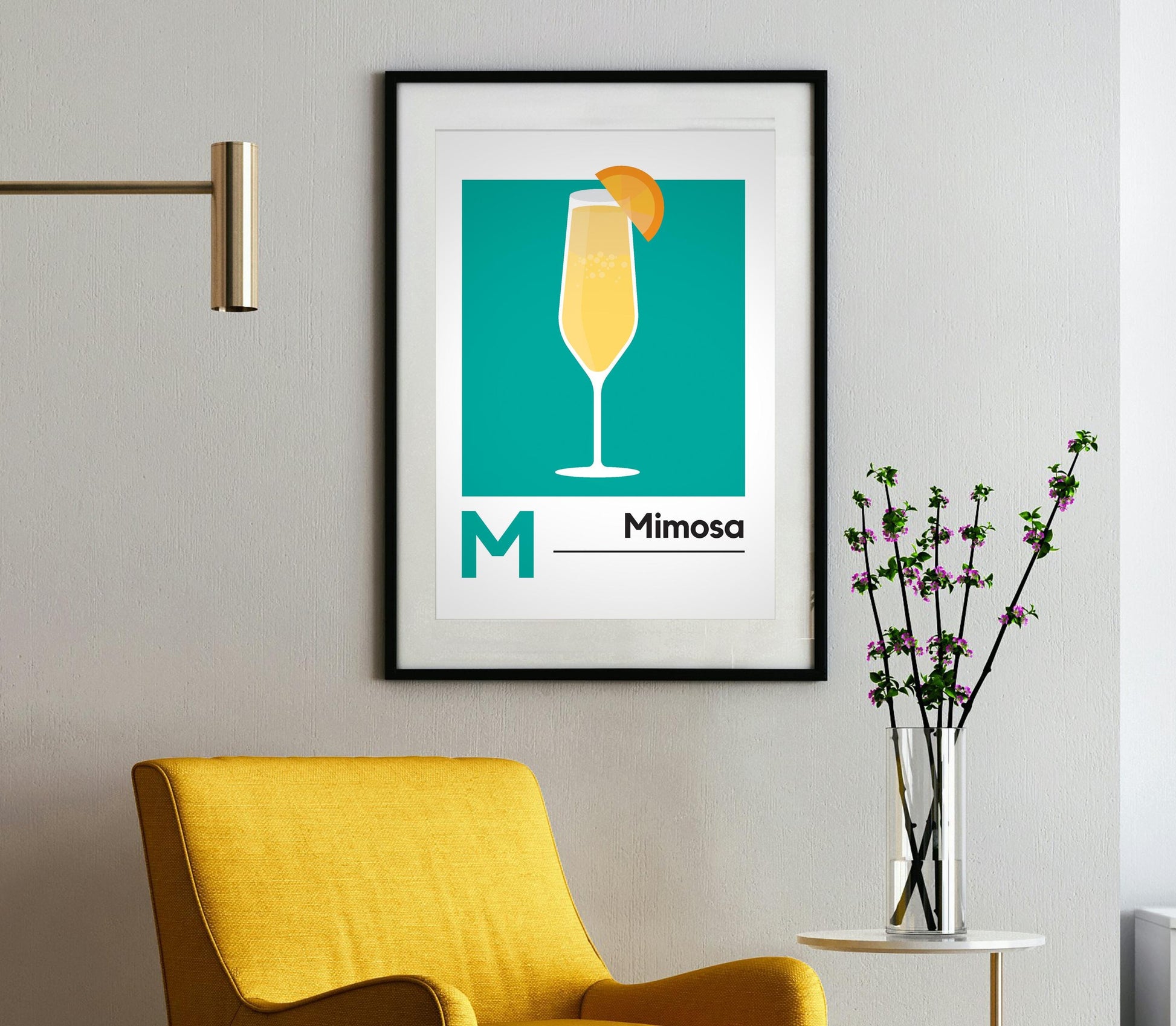 Add a smile to your walls with this Mimosa print from the cocktail collection. Cocktail-inspired designs to bring the mixology vibe to your home!